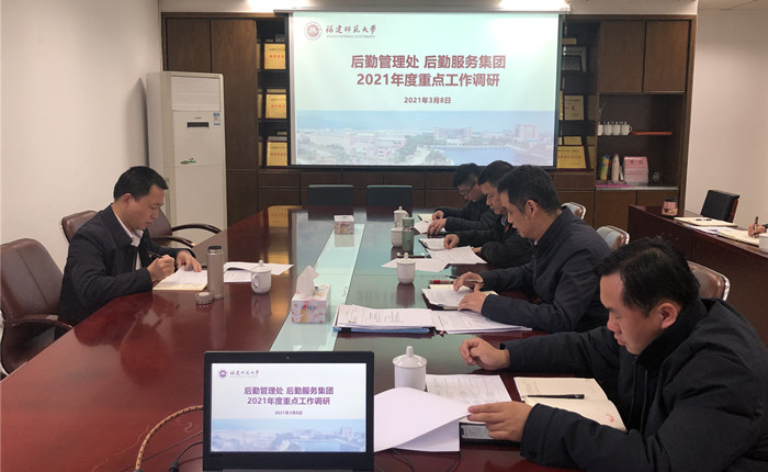 会上,后勤管理处副处长、后勤服务集团副总经理(主持工作)张栋汇报了后勤管理处、后勤服务集团2021年度重点工作安排情况,着重对合同节水、旗山校区许书典楼消防控制室设施设备改造、原华南女子学院旧址修缮保护工程、旗山校区研究生综合楼前广场及周边环境整治等项目作了汇报。