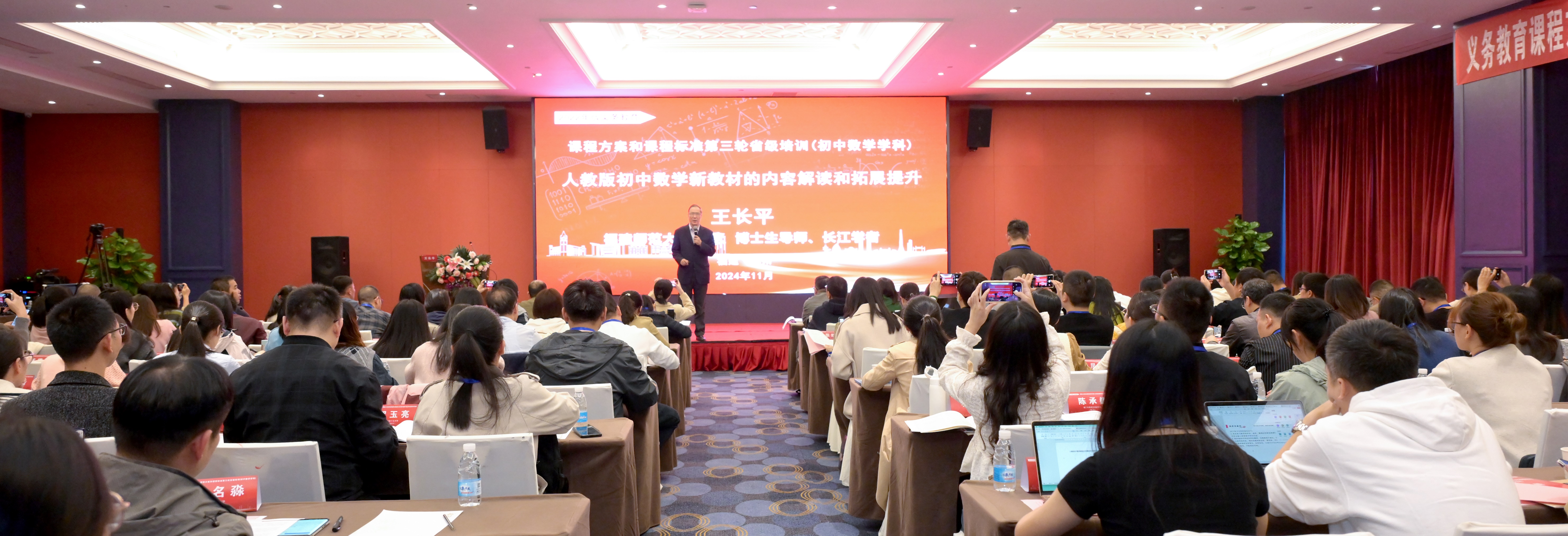 培训班于11月24日至26日在福州以线上线下的方式举行,由省教育厅主办、省普通教育教学研究室协办、球友会平台(中国)承办。校长王长平、福建省普通教育教学研究室张弘,教务处、数学与统计学院相关负责人参加开班式,全省各地市的120余名初中数学教研员及一线骨干教师参与了线下培训,约2万人观看了线上直播。