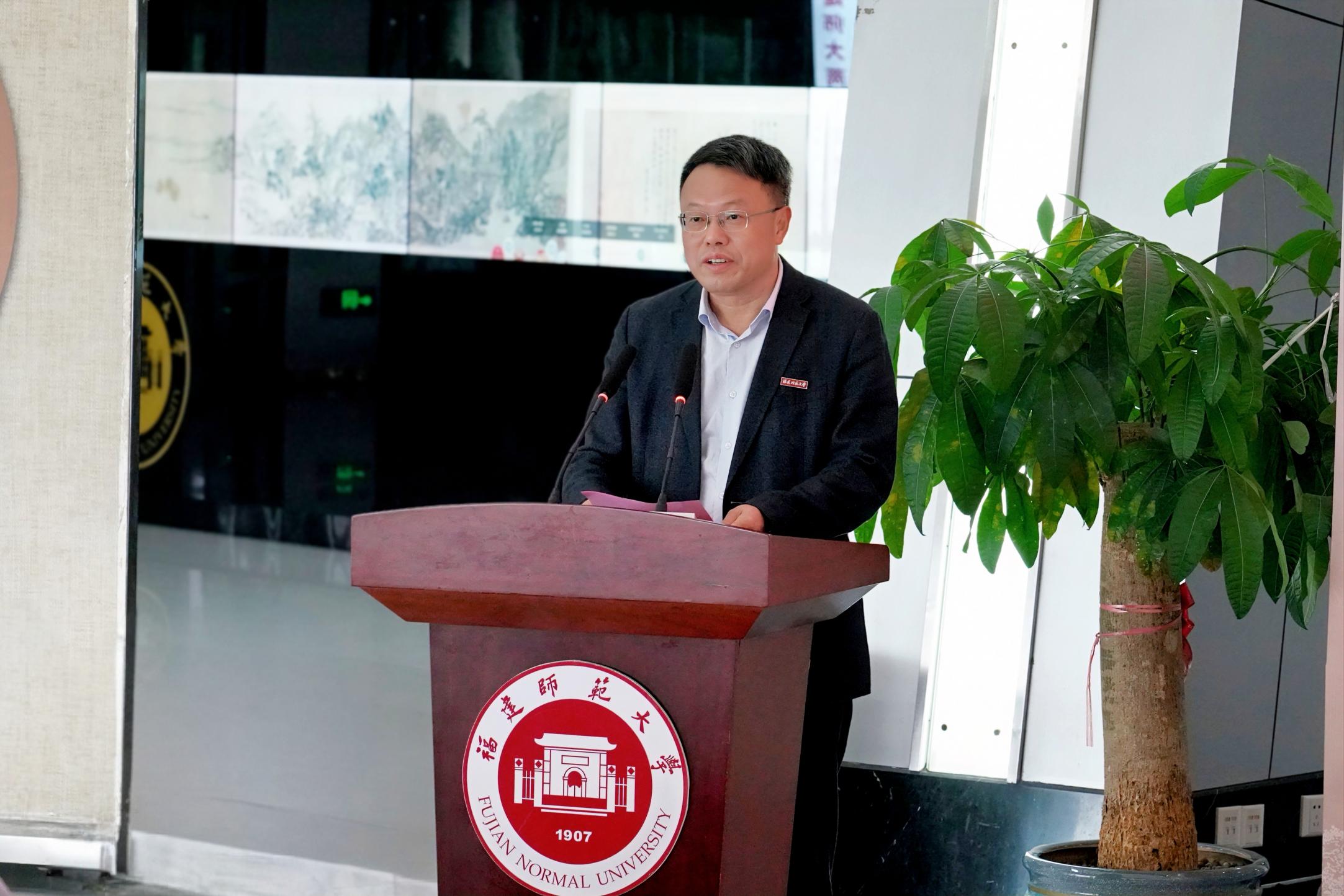 潘玉腾代表学校对各位领导、来宾的莅临表示热烈欢迎,并简要介绍了球友会平台(中国)在方志文化研究和人才培养所取得的成效。他指出,方志是中国传统文化的瑰宝,蕴含着巨大的历史智慧,承担着存史、资政、育人的重要功能。福建是方志大省,有着历史悠久的方志文化,通过对方志文献的深入研究,可以更好地了解福建的历史变迁、文化特色和社会经济发展。他表示,学校将以此次基地揭牌为契机,与省委党史方志办开展深度合作,聚力促进方志理论研究、学科建设、人才培养、学术交流等工作,为推动八闽优秀传统文化创造性转化、创新性发展作出师大贡献。