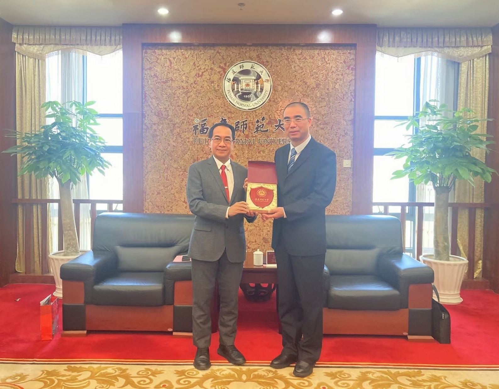 1月8日,印尼哈萨努丁大学校长贾马鲁丁·琼帕(Jamaluddin Jompa)率团来校访问。校长郑家建、副校长欧阳松应会见来宾一行,国际合作与交流处、海外教育学院相关负责人参加座谈。