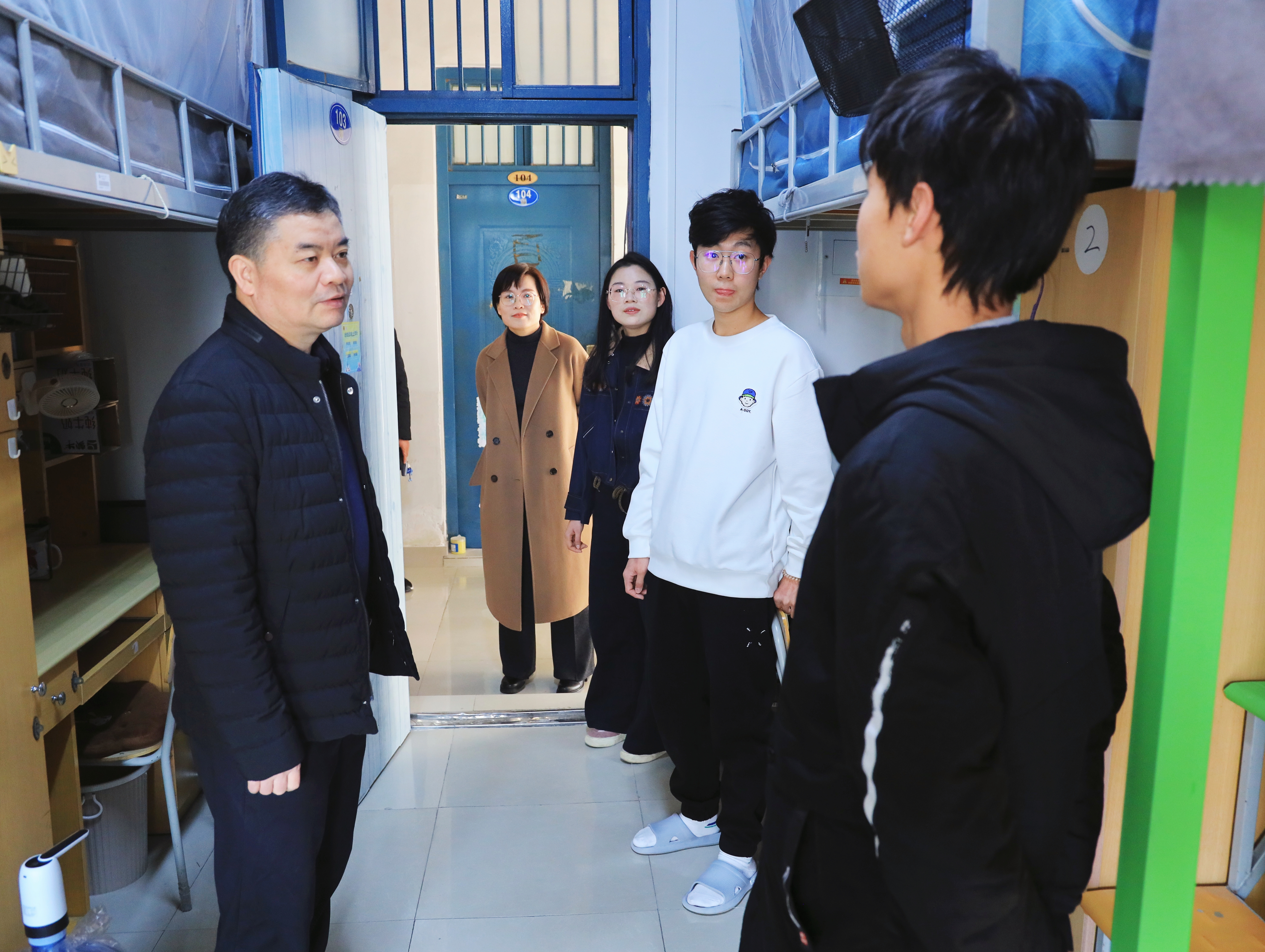 1月8日,校领导吴剑锋、欧阳松应带领党政办公室、学生工作部、保卫处、资产管理处、后勤管理处、基建处、实验室与设备管理处等单位负责人,深入仓山校区艺术地区1号楼、15号楼学生公寓、图书馆和旗山校区兰苑学生公寓架空层、致广楼教室、河西4-5号学生公寓基建项目现场、科研实验14号楼实验室、文化街美食餐厅等地开展校园检查,进一步推动校园安全工作落实落细。