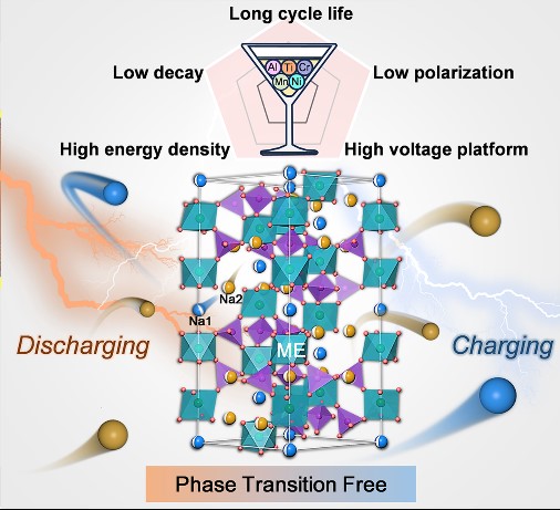 近日,球友会平台吴小慧副教授、赵毅研究员和西北工业大学黄维院士合作,构建了一种具有强ME─O键和高占据Na2位点的中熵材料(Na₃.₂V₁.₁Ti₀.₂Al₀.₂Cr₀.₂Mn₀.₂Ni₀.₁(PO₄)₃,简称ME-NVP),以解决磷酸钒钠的应用问题。研究通过全面的原位/非原位表征,验证ME-NVP不仅可在3.4 V(V³⁺/V⁴⁺)和4.0 V(V⁴⁺/V⁵⁺)处具有两个可逆平台,并在Na⁺插层/脱出过程中展现出无相变反应机制,呈现较小的体积变化(2%)。此外,动力学分析揭示了ME-NVP优越的Na⁺扩散能力。因此,得益于中熵效应,ME-NVP正极在超过10000次循环后仍能保持81.3%的容量,展现出出色的使用寿命。理论计算进一步说明,Na⁺在通道中的弱结合力是其快速扩散的原因,这也是其优异反应动力学的根本所在。此外,刚性的MEO₆八面体结构和Na⁺离子重排能够抑制相变,从而赋予ME-NVP正极优异的稳定性。相关研究成果发表于《Advanced Materials》上。