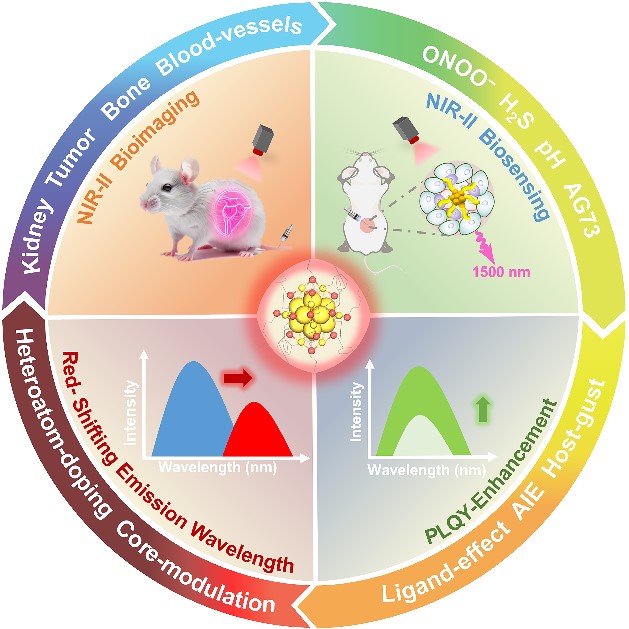 近红外二区(NIR-II,1000-1700 nm)光学成像与生物传感技术因其高信噪比、深层组织穿透力和优异的空间分辨率,已成为生物医学成像研究的热点。然而,现有NIR-II发光材料普遍存在量子产率低和生物相容性不足等问题,限制了其临床应用。金团簇(Au NCs)因其超小尺寸、可调的发光特性及良好的生物相容性等优势,被视为突破现有技术瓶颈的理想材料。