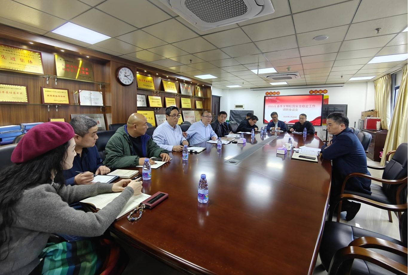 2月28日,吴剑锋副校长到保卫处调研指导校园安全工作,保卫处科级以上干部参加调研座谈会。
