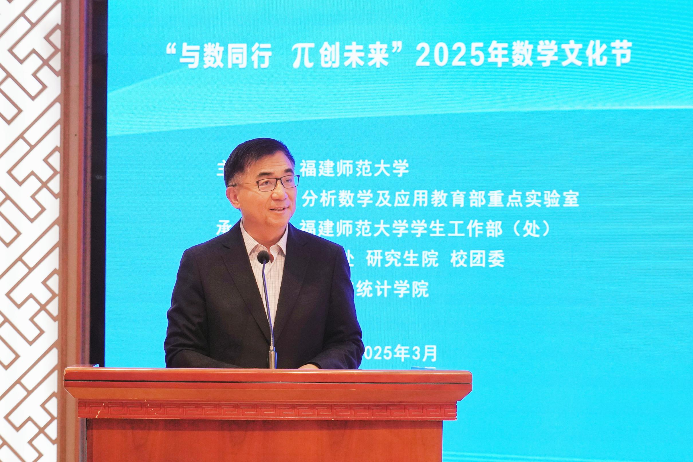 汤涛在致辞中指出,数学是一门古老且充满活力的学科,是科学、技术和工程等领域创新发展的基础。他表示,福建师大数学学科历经百年沉淀,在数学教育与研究领域有着深厚的学术积淀和优良的传统,此次讲坛为数学领域的专家学者提供了交流思想、碰撞智慧、探讨数学未来发展的平台,也为师生搭建了一个深入了解数学、感受数学魅力的绝佳平台,希望本次讲坛能够激发更多年轻人对数学的兴趣,提升大家的数学思维与创新能力,为我国的数学事业贡献力量。