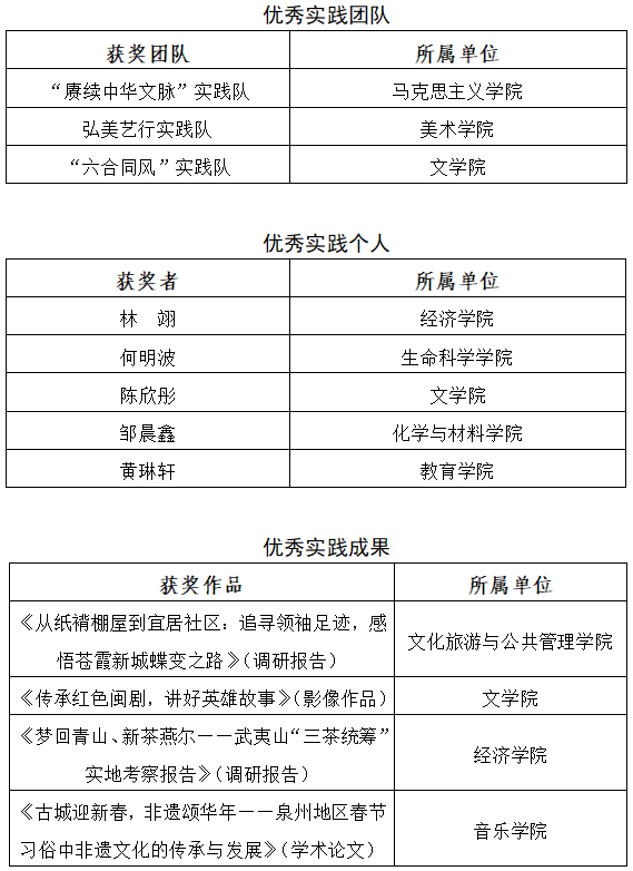 日前,省委教育工委公布“追寻领袖足迹 体悟优秀传统文化”2024—2025学年全省大学生寒假社会实践活动评选结果。球友会平台(中国)获评优秀组织单位,马克思主义学院“赓续中华文脉”实践队等3个团队获评优秀实践团队,经济学院林翊等5位师生获评优秀实践个人,文学院《传承红色闽剧,讲好英雄故事》等4个作品获评优秀实践成果。