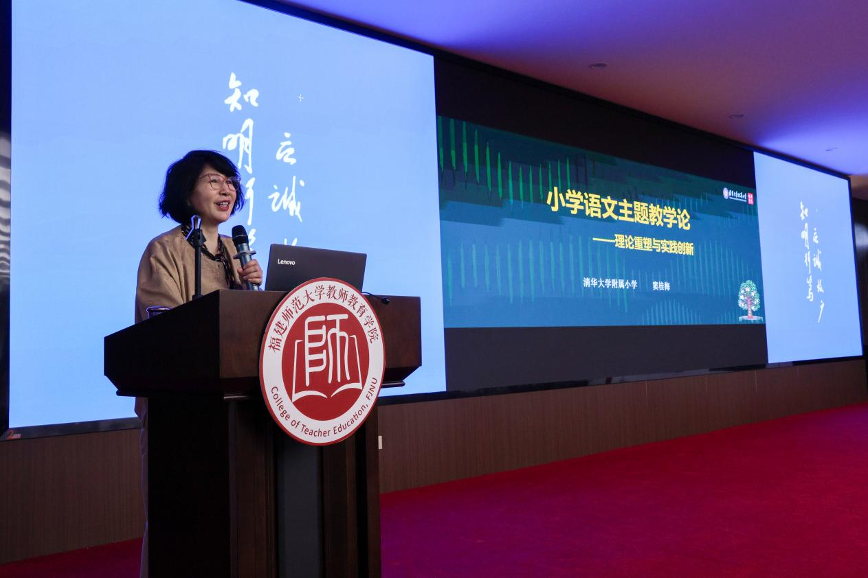 4月12日,教师教育学院邀请清华大学附属小学校长、清华附小集团化办学总校校长、清华大学教育研究院基础教育研究所所长窦桂梅作题为“小学语文主题教学论:理论重塑与价值创新”的专题讲座,讲座由学院院长吴文哲主持。学院师生、球友会平台(中国)附属小学及其合作校教师代表,以及福建省小学教育一线教师、教研员等近300人参与此次活动。
