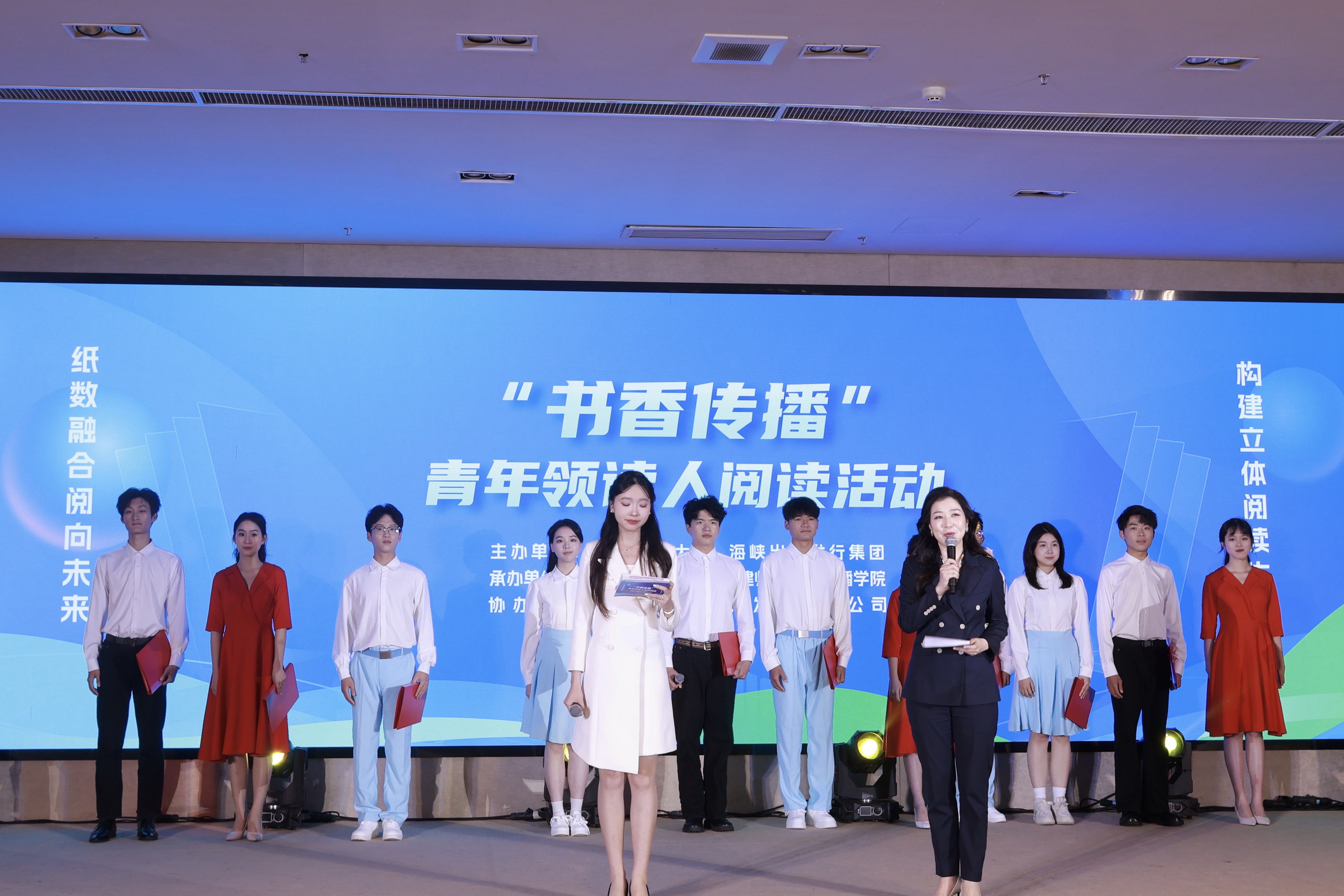 活动同步启动“数智青年领读人”计划与“我为母校捐一本书”活动,校企双方共建共享“云书馆”平台。活动中,播音专业领读人深情演绎《闽江赋》《透过诗词游福建》等经典作品,青年领读人共同宣读《“书香校园”阅读倡议书》,号召全体师生积极投身阅读实践。