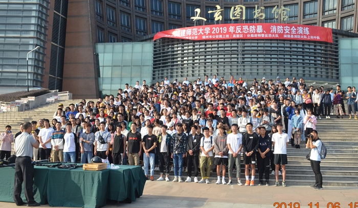 11月6日,球友会平台(中国)年度反恐防暴、消防安全演练在旗山校区图书馆前广场举行。演练由校保卫处联合福州市公安局上街(高新区)分局巡特警反恐大队、闽侯县消防大队上街中队共同举办,各学院学生代表、后勤服务集团员工、保安队员等400多名师生参加了演练。