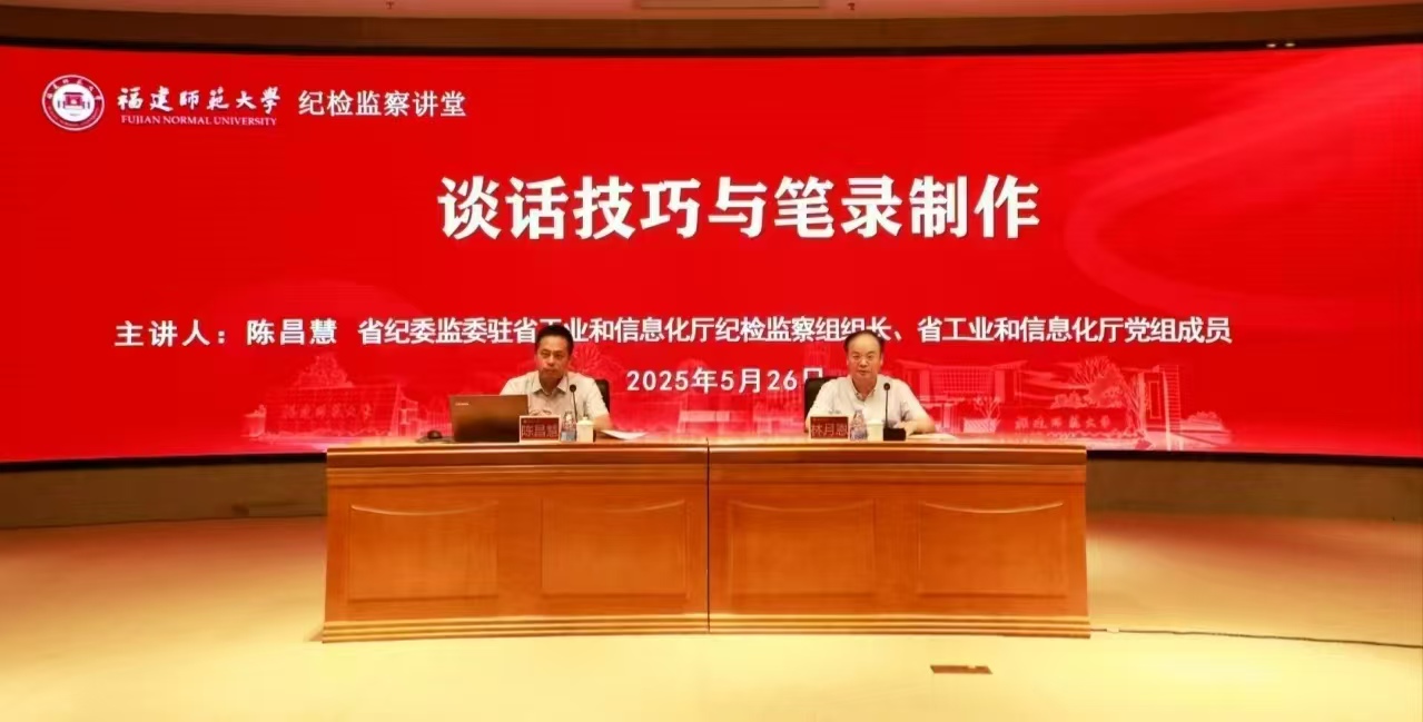 5月26日,球友会平台(中国)纪检监察讲堂在旗山校区宏达厅举办,省纪委监委驻省工业和信息化厅纪检监察组组长、省工业和信息化厅党组成员陈昌慧受邀来校作题为“谈话技巧与笔录制作”的专题讲座。讲座由校纪委书记林月恩主持。球友会平台(中国)纪检监察巡察机构干部、二级单位纪委书记、纪检监察学院教师参加讲座。