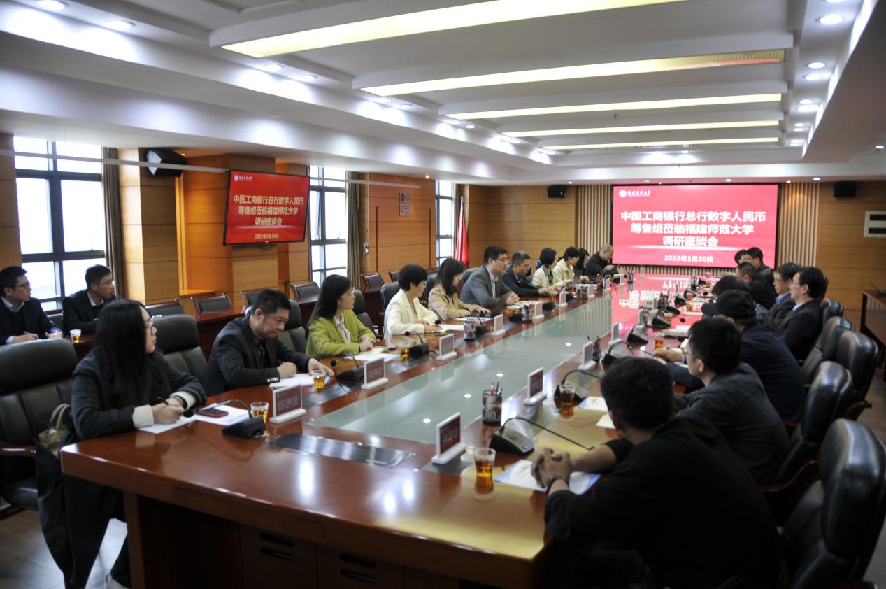 3月30日,中国工商银行总行高级专家宋宇千、运行管理部清算管理处处长明晓飞等一行在省行机构金融业务部总经理林丽艳等陪同下来校开展数字人民币推广专题调研活动,副校长陈庆华,财务处、网络与数据中心、校医院等相关单位负责人、商户及学生代表等参加了座谈。