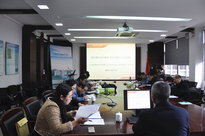 122日上午,地理科学学院党委在仓山校区邵逸夫楼304会议室组织召开以“强化基层组织建设 压实全面从严治党责任”为主题的教工党支部书记、组织委员工作会议及座谈会,传达学校近期有关会议精神,通报学院党委近期重点工作,结合支部工作实际,落实省委巡视和校内巡察反馈问题整改要求, 推进“不忘初心、牢记使命”主题教育,学习宣传贯彻党的十九届四中全会精神,组织开展好2019年度专题组织生活会和开展民主评议党员等工作。院党委书记李旭同志主持了会议。