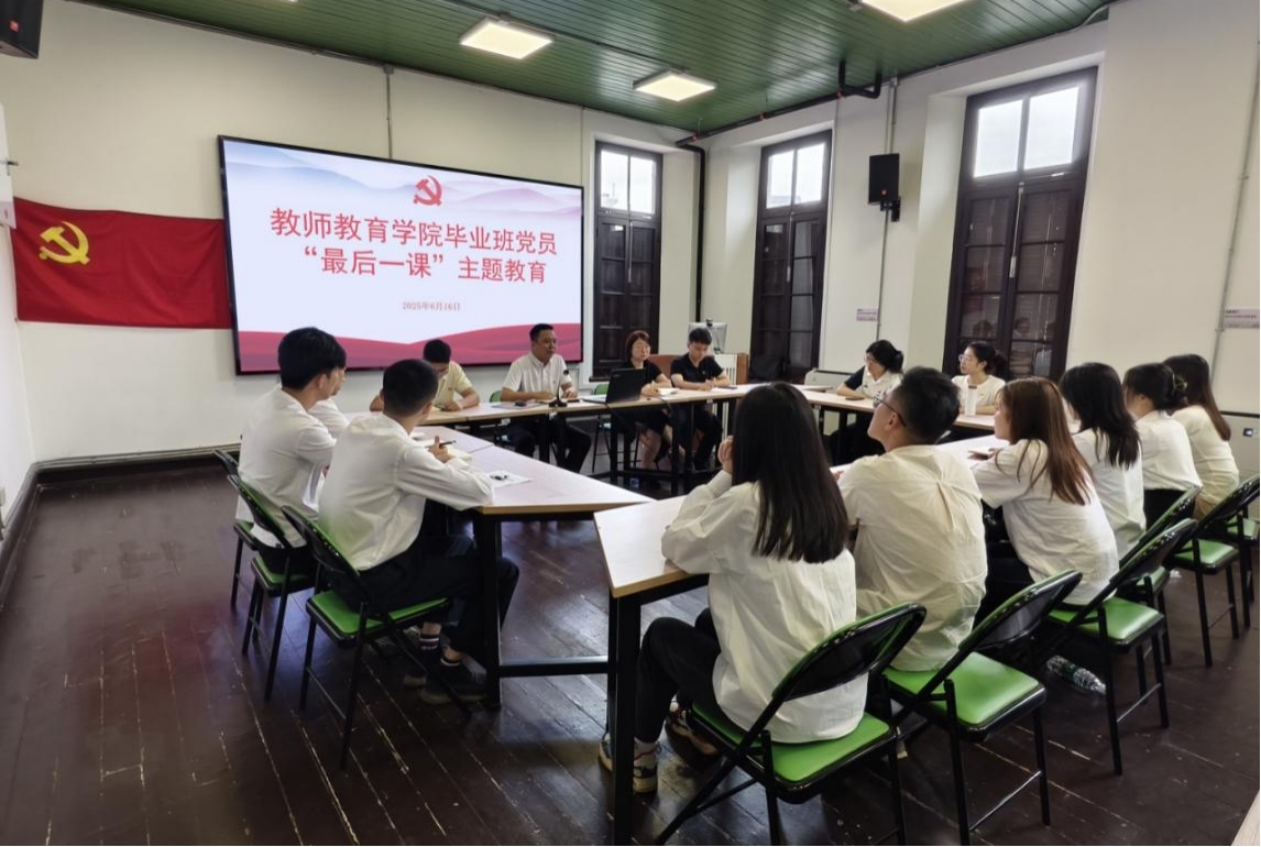 617日,教师教育学院为2025届毕业生党员举办“最后一课”主题教育活动。学院党委书记陈祖棋、党委副书记黄一菁、毕业班辅导员、笃行党支部全体毕业生党员出席。