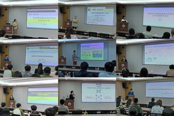 参与教师围绕“金属有机框架材料孔工程与气体吸附分离”“光电不对称催化C–H官能团化”“液相化学组装富勒烯材料及其光伏电池研究”等不同的学术主题展开分享,涵盖了框架材料、催化性能理论研究、光伏电池等多个学科领域,展现了学院青年教师扎实的学术功底和良好的科研风貌。
