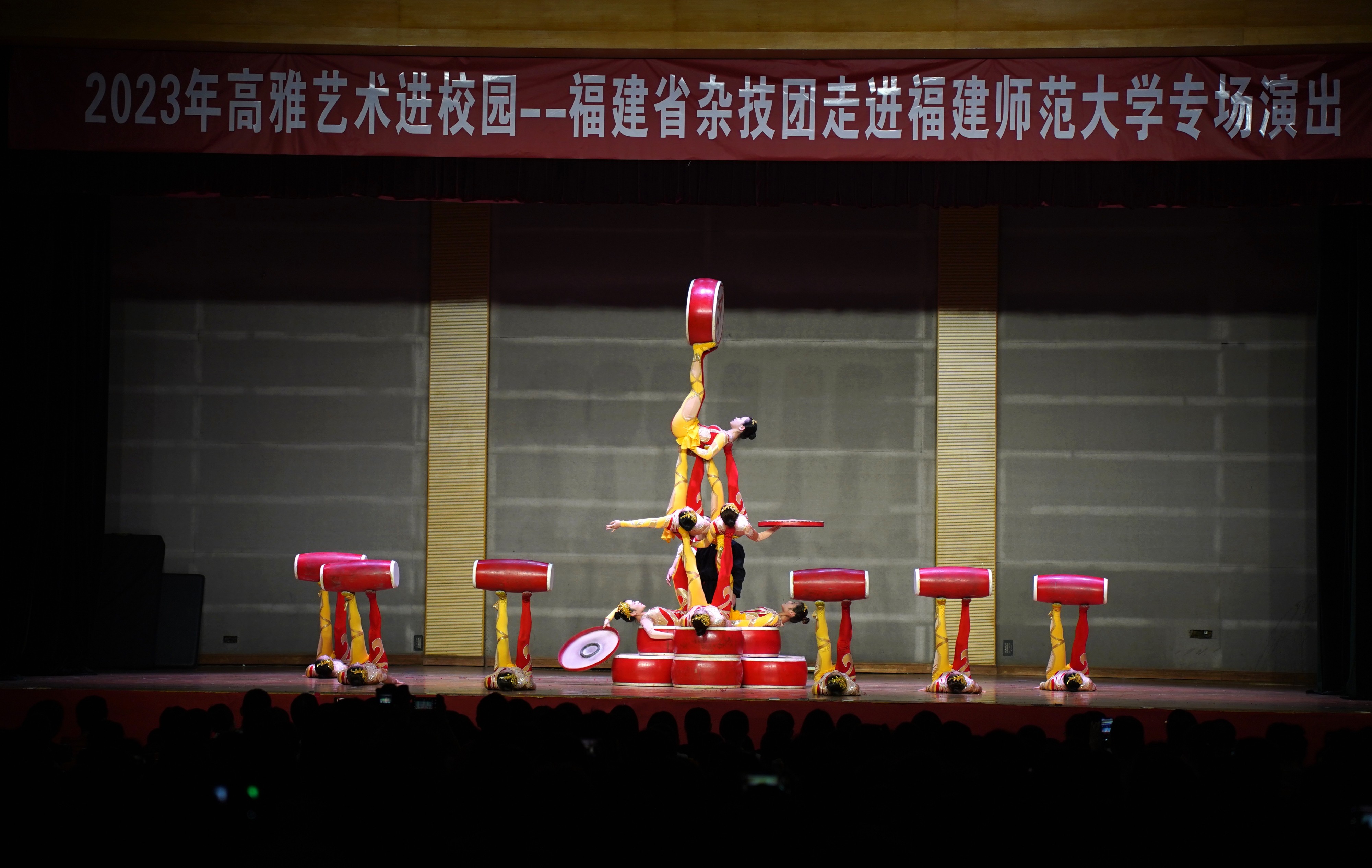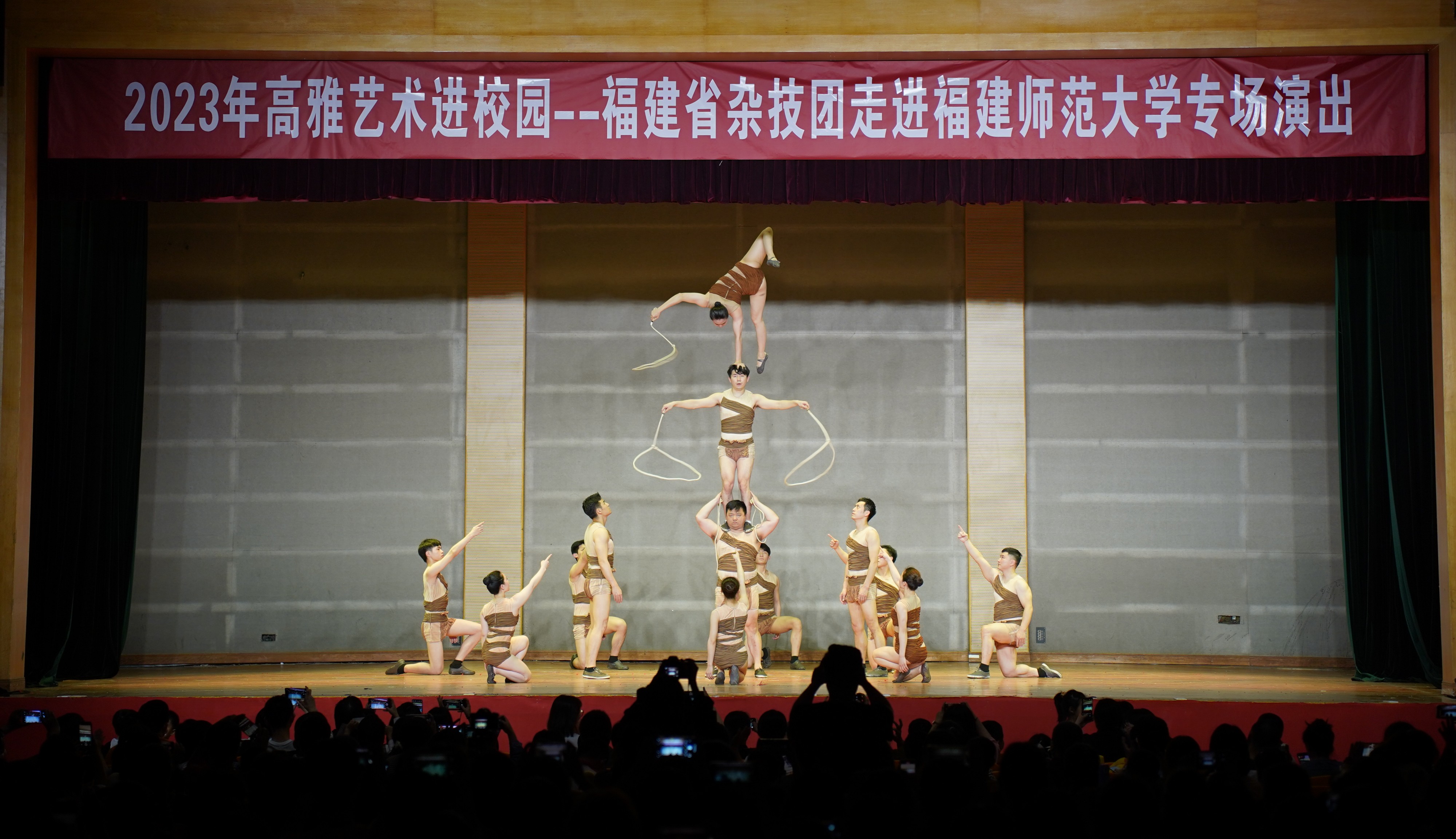 近日,2023年首场高雅艺术进校园福建省杂技团专场在球友会平台(中国)旗山校区青春剧场举行,共有1000余名师生到场观看。