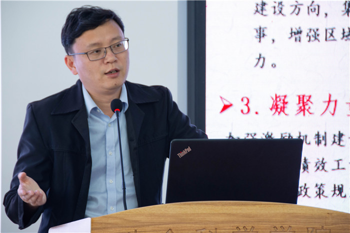 在分组讨论环节,杨民和、郑毅、陈由强、章文贤、付新苗等5位老师分别召集本组教师,就“学院平台、科研团队建设及融合发展的建议”“对照学校目标责任管理要求,我院需采取的措施”“如何结合地方区域经济发展需求,确立我院优先发展的学科及特色方向”、“如何做好人才引育及梯队建设工作”和“如何采取有效措施,调动教师积极性”等议题展开讨论。各讨论小组成员结合会前调研成果,积极发言,气氛热烈;集中汇报中,各组召集人就小组讨论结果作汇报,汇报内容详实、意见中肯,为学院发展提供了许多宝贵意见和可行性建议。