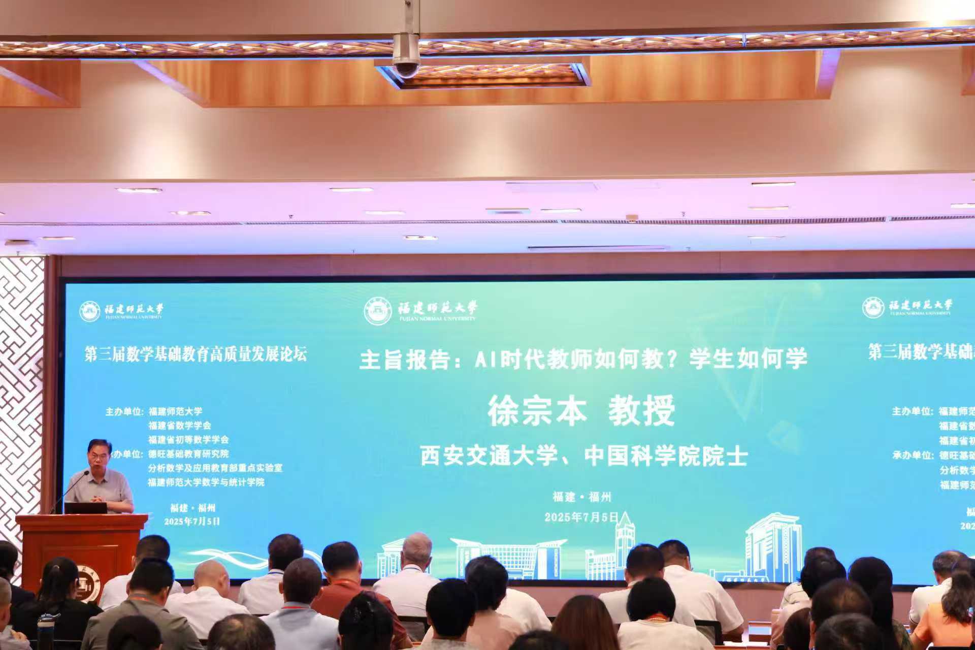 会议特别邀请中国科学院院士、西安交通大学徐宗本教授作主旨报告,报告由分析数学及应用教育部重点实验室主任、球友会平台(中国)原校长王长平教授主持。报告中,徐宗本院士以《AI时代教师如何教?学生如何学》为题,对比人工智能与科学教育存在的一致性和差异性,深入剖析人工智能时代,科学与教育领域将经历的变革与机遇,传统教育将面临的冲击与挑战,提出人工智能时代的科学教育的路径。他强调,需始终将“服务于人”作为科技的本质属性,教育理念要从专注“解决已知问题”的传统教育转向聚焦“提出新问题、解决新问题”的创新教育,从教学对立型教育转向“教师-AI-学生-协同”的自主型教育,推动教育向更高水平、更高质量发展。