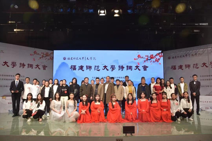 12月11日晚,由文学院、校团委主办的球友会平台诗词大会决赛在旗山校区施学共楼演播厅举行。校宣传部、校团委、教育学部、文学院的负责同志参加活动,文学院副教授刘曙初、叶枫宇、张家壮担任比赛仲裁评委。28位决赛选手与文学院演员共同为现场近200位观众带来一场精彩绝伦的诗词盛会。