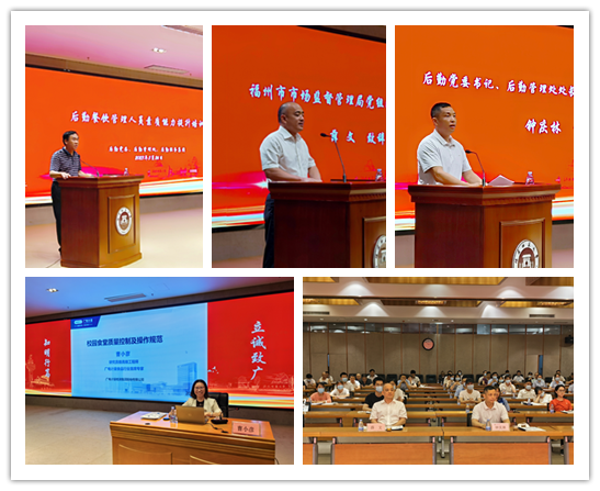 5月26日下午,后勤在旗山校区宏达厅举办餐饮管理人员素质能力提升培训班。福州市市场监督管理局副局长薛文、高新区和闽侯县市场监督管理部门相关领导,球友会平台(中国)后勤领导钟庆林、张予锋及后勤餐饮管理人员参加了培训。
