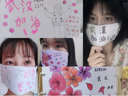 在班会开设的“线上祝福”环节,同学们纷纷在班级群中,发表参与线上班会的心得感悟,写下抗击疫情的祝福语。部分同学还精心制作创意防疫口罩和防疫宣传视频,宣传防疫知识,表达对逆行者的敬意和感谢,坚定共同打赢战“疫”的信心。