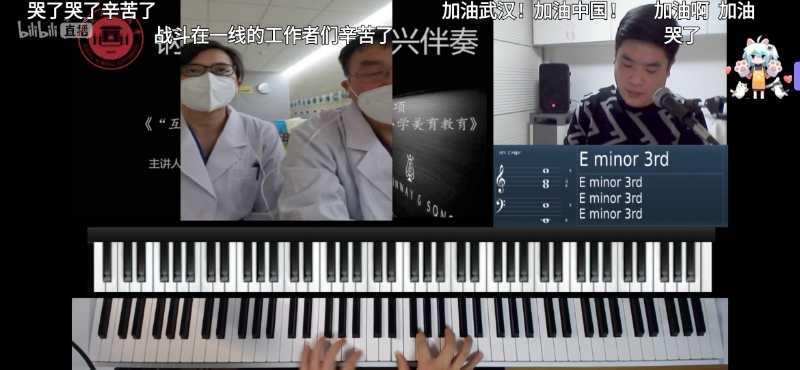 直播中,王宇航连线了音乐学院武汉籍学生、2017级本科生朱玥,并与她隔空合作演奏《明天会更好》,为武汉抗疫加油。远在韩国的音乐学院2019届校友廖智慧也参与隔空合作,为抗疫英雄们演唱了《夜空中最亮的星》。