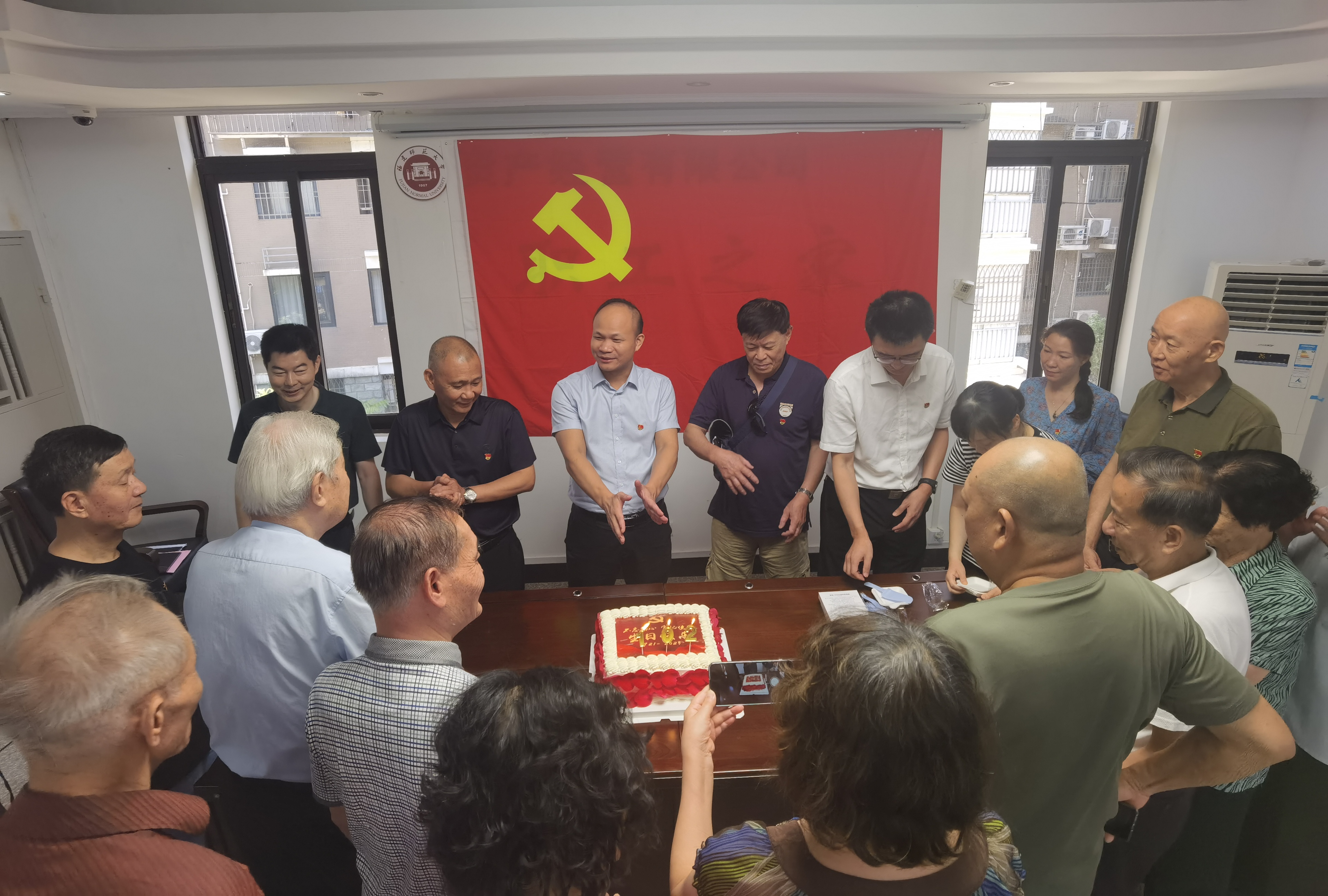 为强化党员的身份意识和责任意识,全体党员一起过集体政治生日。陈金章带领全体党员同志面向党旗,庄重宣誓,并为全体党员分发“政治生日”贺卡,现场奏响了庄严的《国际歌》,大家怀着激动的心情,一起吹蜡烛、切蛋糕,在满满的仪式感中度过了一次既庄重又温馨的集体政治生日。
