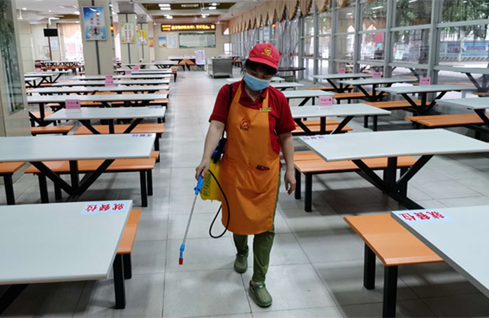 物业管理科已按照“环境清洁卫生为主、预防性消杀为辅”的原则,完成了对仓旗两校区的教学楼、学生公寓、行政办公楼等128栋楼宇公共区域的卫生保洁和全面消杀工作,正在对各类空调进行分批次清洗。