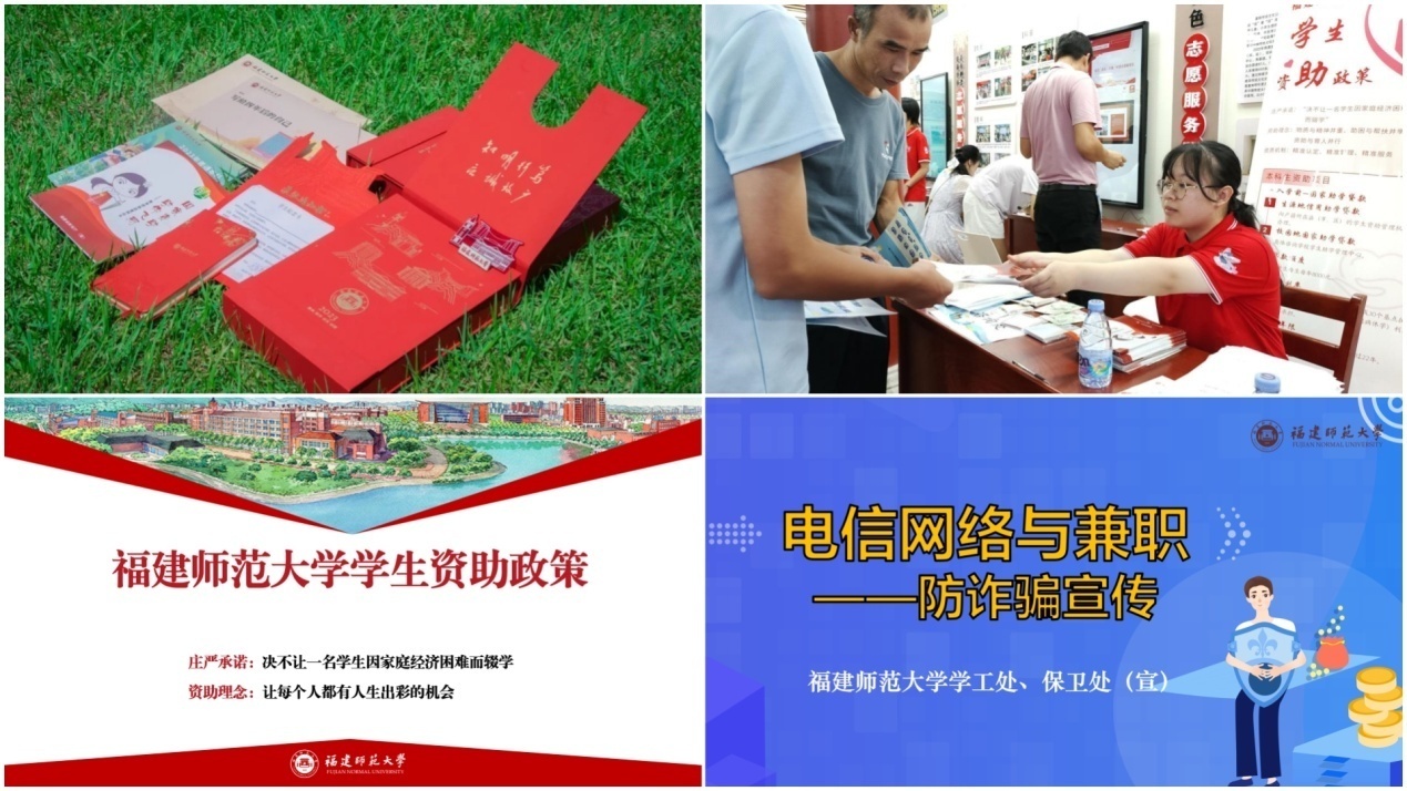 学生资助管理中心开通暑期资助热线,安排专人24小时接听来电,详细解答新生关切的生源地助学贷款申请、家庭经济困难认定条件、学校奖助学金发放标准等问题;精心制作《图解福师大资助政策》《电信网络与兼职防诈骗宣传》宣讲PPT,安排新生辅导员开展专题线上教育,通过详尽的数字、生动的案例和形象的演示,让新生在未入学前就全面了解资助政策,提高防骗意识。