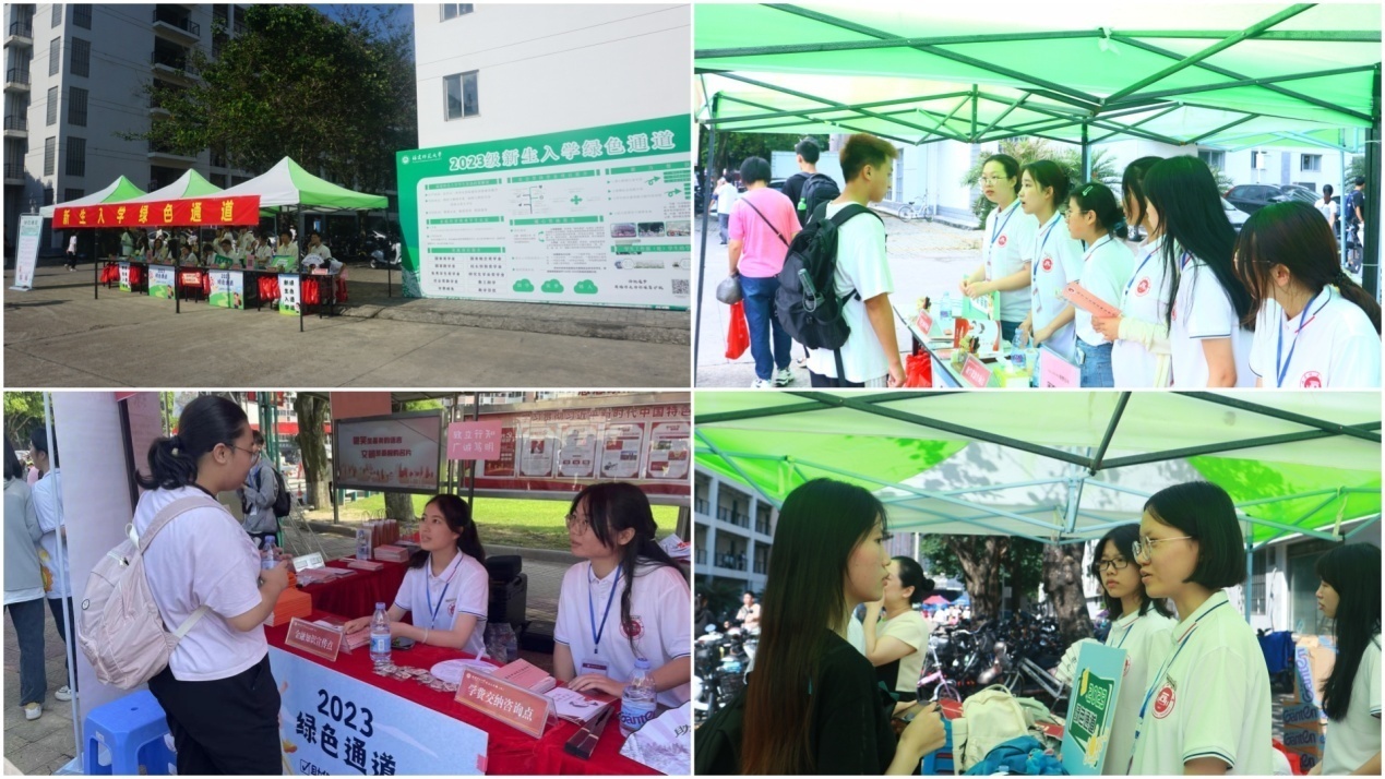 在新生报到当日,学校设置“绿色通道”宣传点,为新生提供缓交学费、勤工助学、国家助学贷款、金融知识宣传、大学生医保等相关政策咨询。校领导潘玉腾、王长平、涂荣、吴剑锋来到现场为30位特困新生代表颁发“新生关爱大礼包”,送上500元学业补助金、一年免费校园网服务、免费医保、勤工助学岗位、励志书籍、书包、台灯、耳机、运动手环与水杯等,并表示学校将提供多元资助保障,不让一个学生因家庭经济困难而失学。