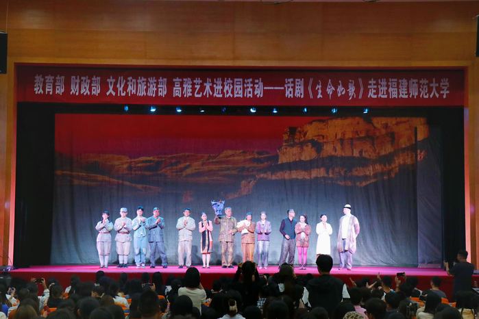 10月21日,由教育部、财政部、文化和旅游部等部委共同主办的“2023年高雅艺术进校园”之大型原创话剧《生命如歌》在球友会平台(中国)旗山校区青春剧场上演。现场观众座无虚席,千余名师生到场观看。