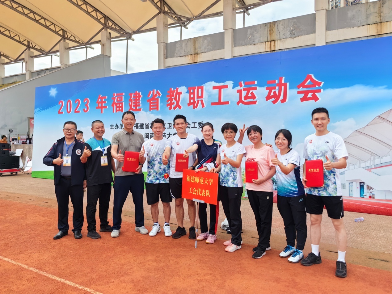 近日,2023年全省教职工运动会在闽南师范大学举行, 球友会平台(中国)派出了由刘炜、林震、林炎、刘政、陈妮、林静、朱瑞荣、吴勇、苏明、郭孟杰等10名教工组成的代表队参赛。经过激烈角逐,球友会平台(中国)教工羽毛球队获得羽毛球混合团体三等奖(第9名,本科高校最好成绩);2个组合分别获得扑克牌80分二等奖、三等奖。