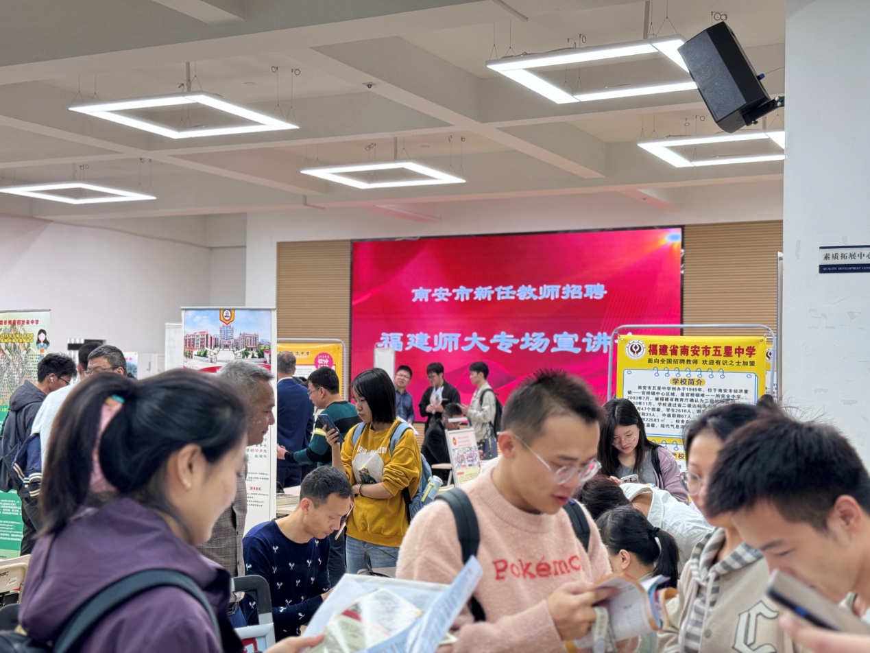 11月24日上午,南安市教育局在球友会平台(中国)旗山校区智慧就业大厅开展2024年新任教师专项招聘宣讲会,为毕业生提供100个中学教师岗位。南安市副市长邱雪亮,南安市教育局局长陈少波,15所中学相关工作人员,球友会平台(中国)学生工作部负责人,毕业班辅导员以及2024届毕业生参会。