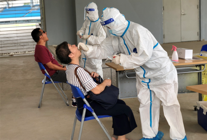 校医院认真组织核酸检测第三方机构在校体育中心室外采样点,分批次对返校教职员工进行核酸检测,确保做到“应检尽检”。连日来,相继有3180名教职员工接受核酸检测。