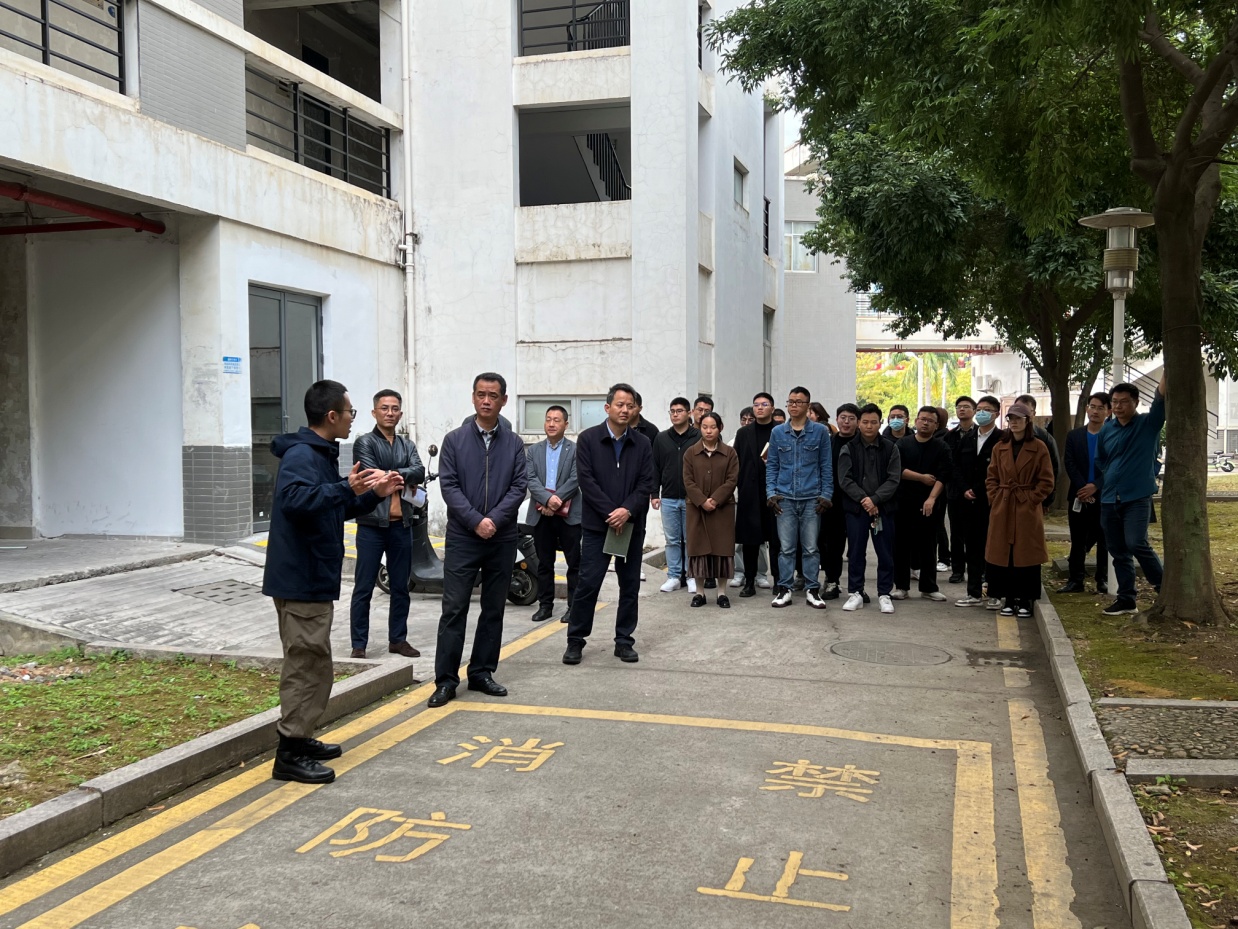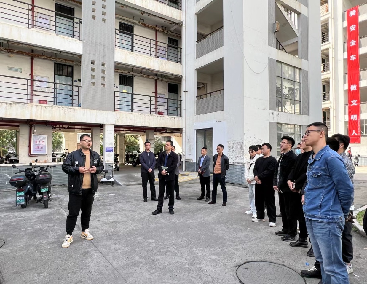 地理科学学院、光电与信息工程学院详细介绍了学生电动自行车情况摸底、违规电动自行车清理、停车区域设置、志愿者督导等具体做法。与会人员现场观摩学生公寓李苑1号楼、桂苑1-3号楼电动自行车停放“示范区”,近距离学习相关学院的特色做法和工作亮点,并交流研讨开展校园电动自行车治理过程中的难点堵点问题。