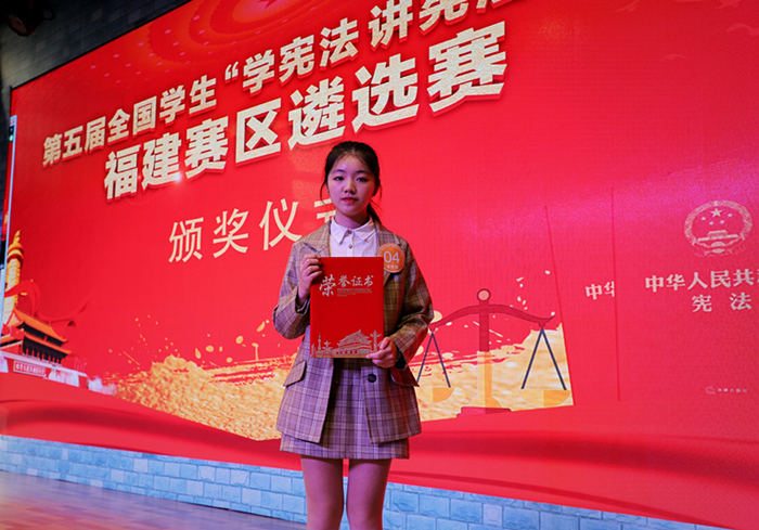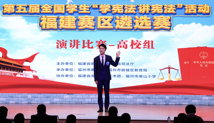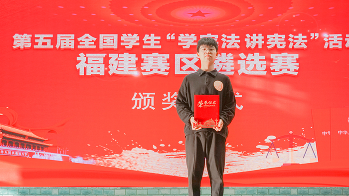 1017日至18日,由福建省教育厅、福建省司法厅主办,福州市教育局、鼓楼区教育局承办的第五届全国学生“学宪法讲宪法”活动福建赛区遴选赛在福州举行。法学院2019级学生荆柯宇(指导老师:陈斯彬)以作品《平凡之路》荣获高校组演讲比赛一等奖,协和学院2018级学生黎译文(指导老师:翁怡)、法学院2018级学生林雨欣(指导老师:杨雅华)分别荣获高校组知识竞赛一等奖、三等奖。