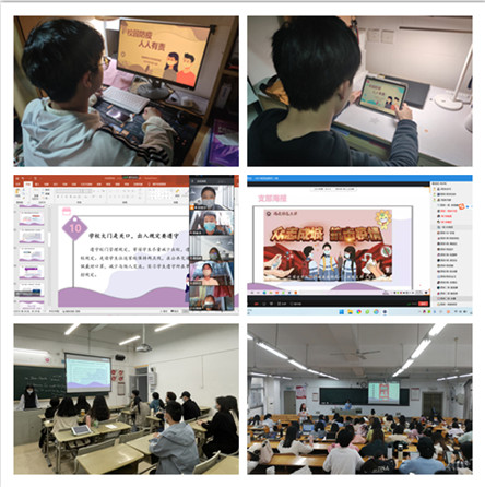 本次主题班会采取线上和线下相结合的方式,各学院辅导员、班主任们主动深入课堂、班级、宿舍参加活动。一是加强校规校纪教育。利用省内外高校学生违反疫情防控规定典型案例,开展疫情防控相关警示教育,要求学生严格遵守法律法规、校纪校规,不断增强遵纪守法意识和自觉;二是加强防控知识教育。讲明疫情防控最新政策,讲清当前疫情防控严峻形势,讲细学校疫情防控工作要求,引导学生积极关注疫情防控动态,掌握疫情防控知识和学校最新防控要求,当好自身健康安全的第一责任人;三是加强思想品德和行为习惯教育。继续上好疫情防控思政大课,大力弘扬伟大抗疫精神,不断增强学生的抗疫信心。同时,教育引导学生用实际行动积极维护校园健康安全,在校园坚持佩戴口罩、不聚集,非必要不出校、减少网购、不点购校外外卖,自觉保持健康的生活方式。