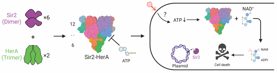 Figure: Summary of the molecular mechanism of the Sir2-HerA anti-phage system.