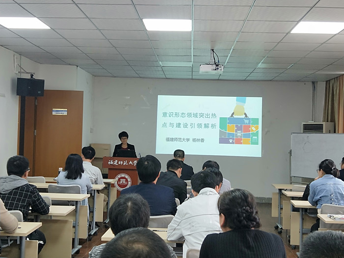 11月25日下午,环境科学与工程学院在仓山校区实验中心二楼多媒体教室举行教职工理论学习会,邀请校党委讲师团成员、协和学院副院长杨林香教授作《意识形态领域突出热点与建设引领解析》专题辅导报告。报告会由院党委书记林玉辉主持。