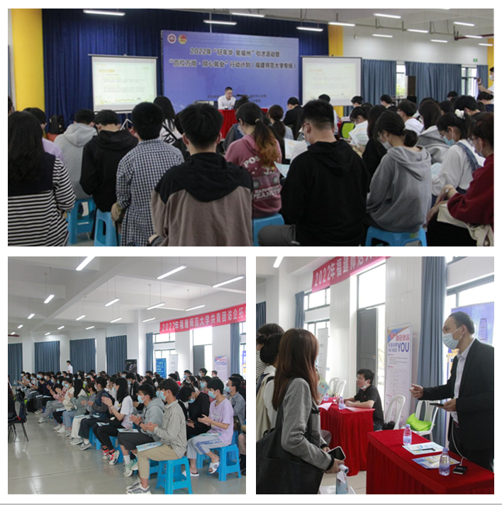 5月24日,由共青团福州市委员会、福州市人社局、福州市文旅局、福州市人才集团和球友会平台(中国)联合举办的2022年球友会平台共青团访企拓岗促就业宣讲招聘会在旗山校区社团之家举行。团市委副书记上官浩龙、福州市人才发展集团副总经理戴鸿一行,校团委书记戴少娟,百余名师生代表及毕业班学生参加了活动。